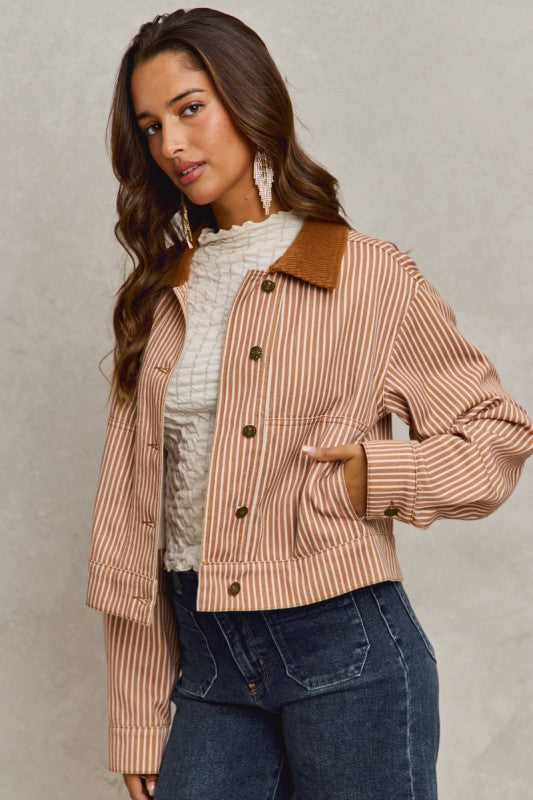 • Stripe button down jacket with corduroy collar
